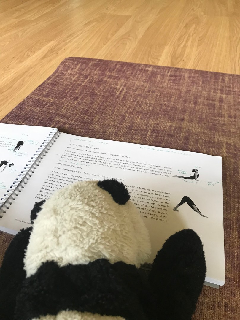 Pour bien comprendre chaque figure, on les refait plein de fois, on sert de cobaye, on apprend les noms en sanskrit! Bref, J2 et j’ai déjà des courbatures.