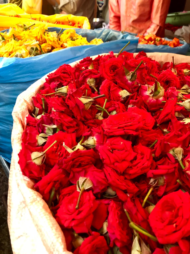 Un festival se prépare dans deux jours, les étals sont remplis de fleurs fraîches. Les couleurs et les odeurs sont agréables. Par contre, c’est bondé!