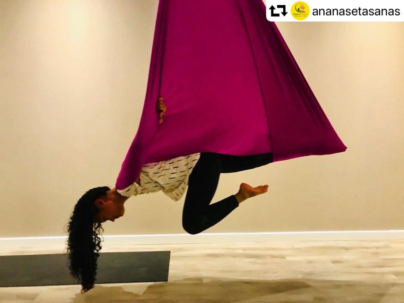 Il faut quand même que je vous raconte. Ananas et Asanas, c’est un bar à jus et un studio de yoga à Lyon, vers Guillotière. Ca faisait longtemps que je me disais qu’il fallait que je teste le lieu. J’ai rencontré Marie, la fondatrice, en sirotant un délicieux smoothie. Waouw, il y a des tissus pour faire du yoga aérien. D’ailleurs, elle recrute un prof de plus. Comme par hasard, il y a une formation le week-end qui arrive et il reste une place. Elle était pour moi, c’est sur!
