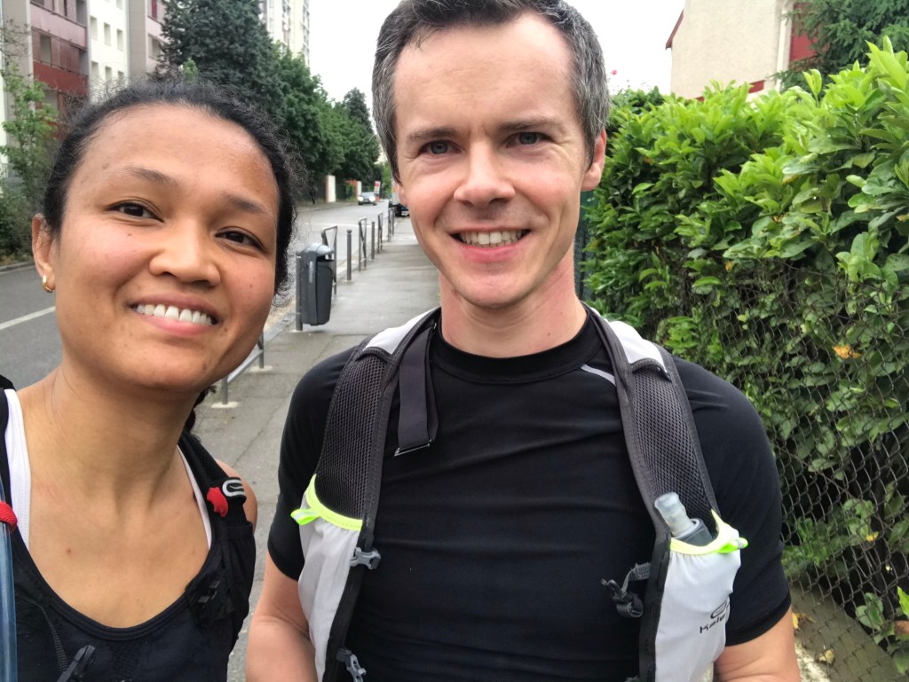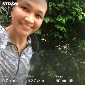 Pour la sortie longue de 17 km, on avait la même cadence avec mon mari. C’est rigolo et magique comme ambiance: unis dans la transpiration et les foulées. C’est une chose de se supporter en confinement, c’est pareil en courant.