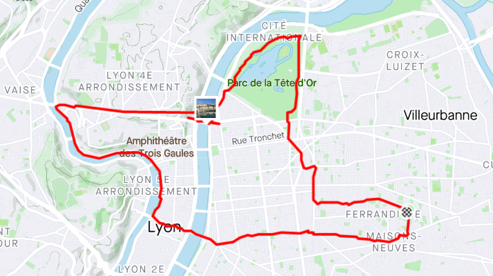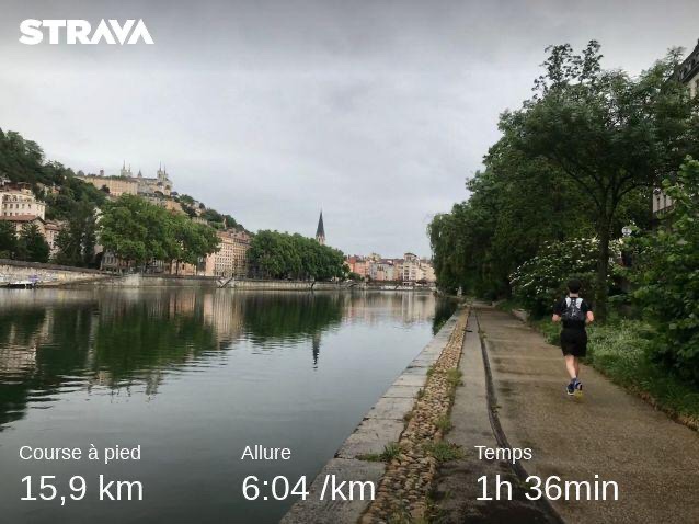 L’astuce de la semaine est un conseil du chéri pour le parcours vallonné (enfin faux plat, on est à Villeurbanne): « Faire des petits pas dans les montées, utiliser les abdos ». Hyper efficace!