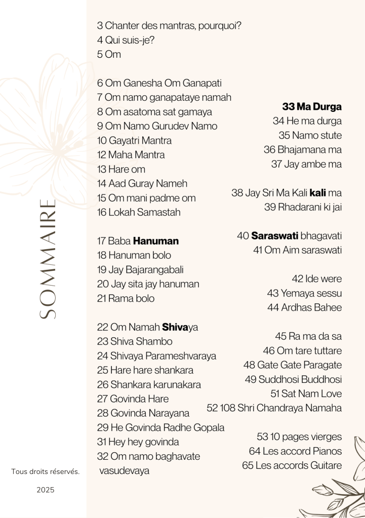 - 45 chants de mantras, sélectionnés et recueillis sur 3 ans