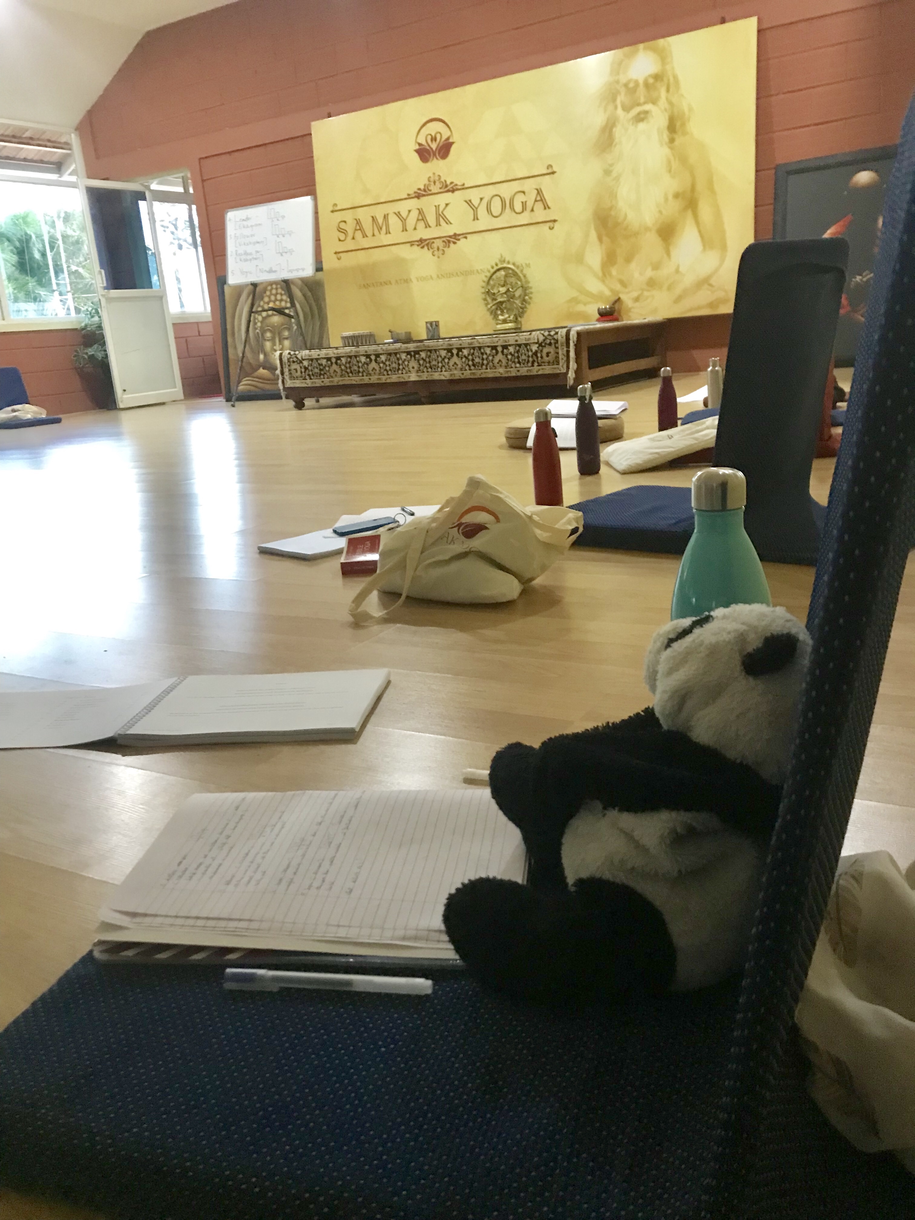 On a commencé les cours de philosophie, en plus des 2h de yoga au réveil à 6h30 et des asana clinic. C’est un one man show à l’indienne, le prof est hilarant mais plein de sagesse.