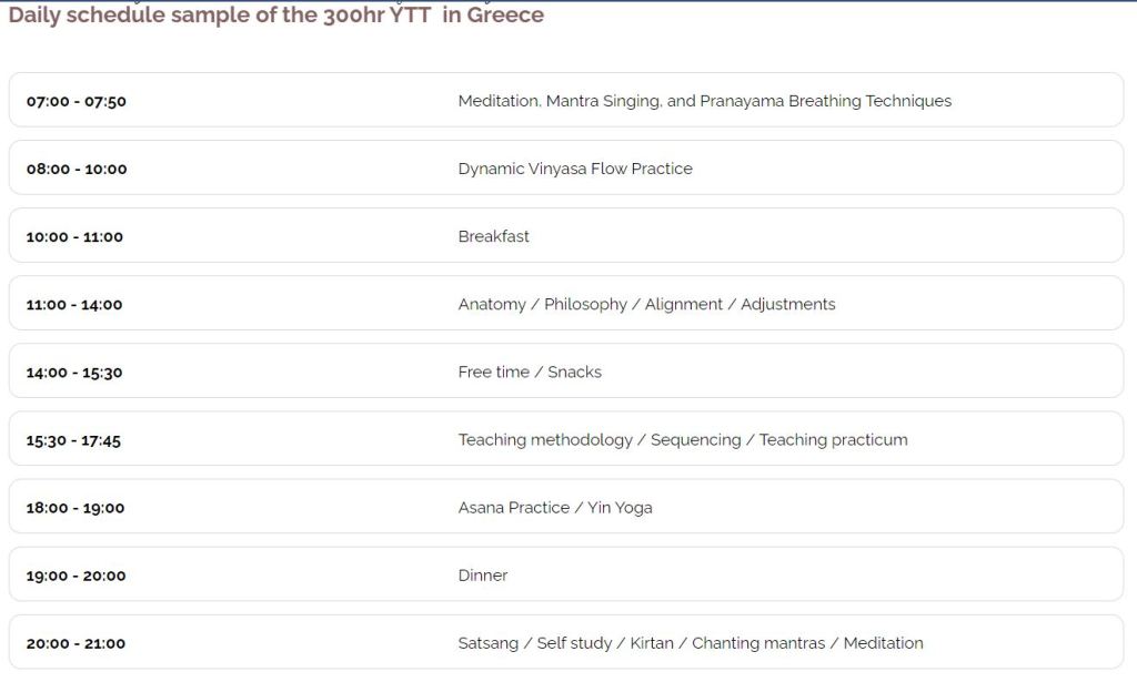 Petit aperçu du programme : 7th – 31st August 2024 (24 nuits), du yoga de 7h du mat à 21h ! #happyme