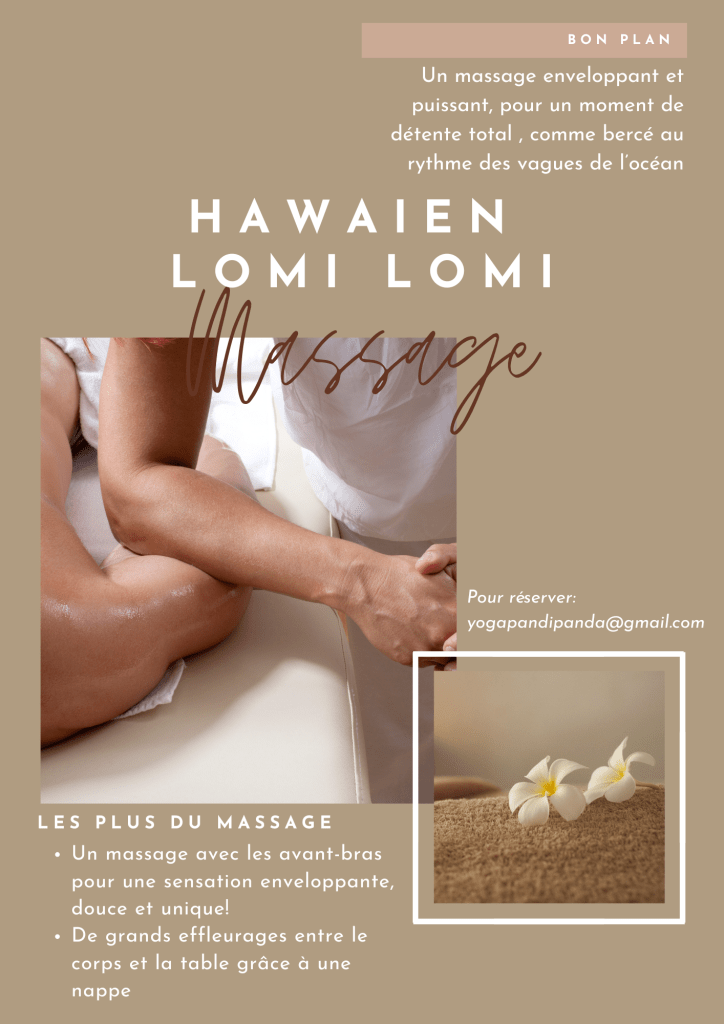 Le massage hawaïen lomi lomi est un massage enveloppant et puissant. Il apporte une détente totale et il est si différent des autres massages!