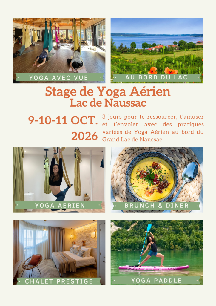 Imagine toi dans un domaine hôtelier haut de gamme au bord du Grand Lac de Naussac, à pratiquer du Yoga Aérien et tester le Yoga Paddle, une cure de bleu et de vert 🌿🌊⛰️