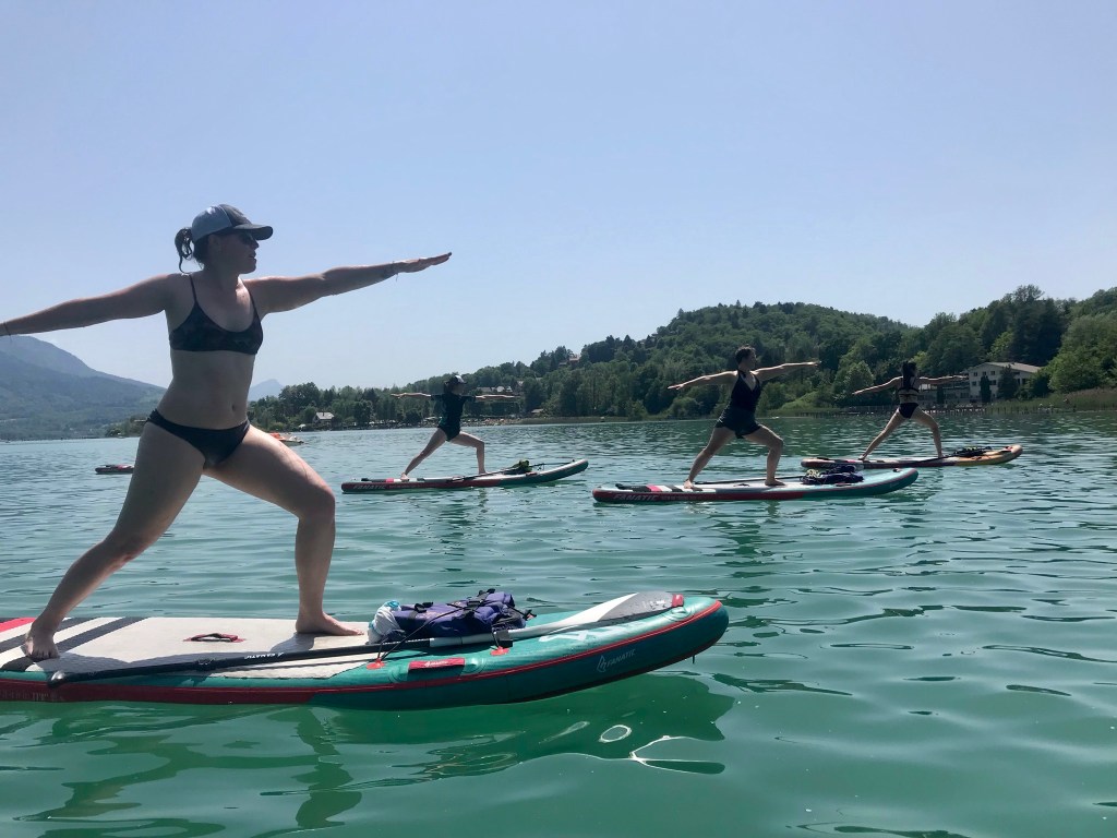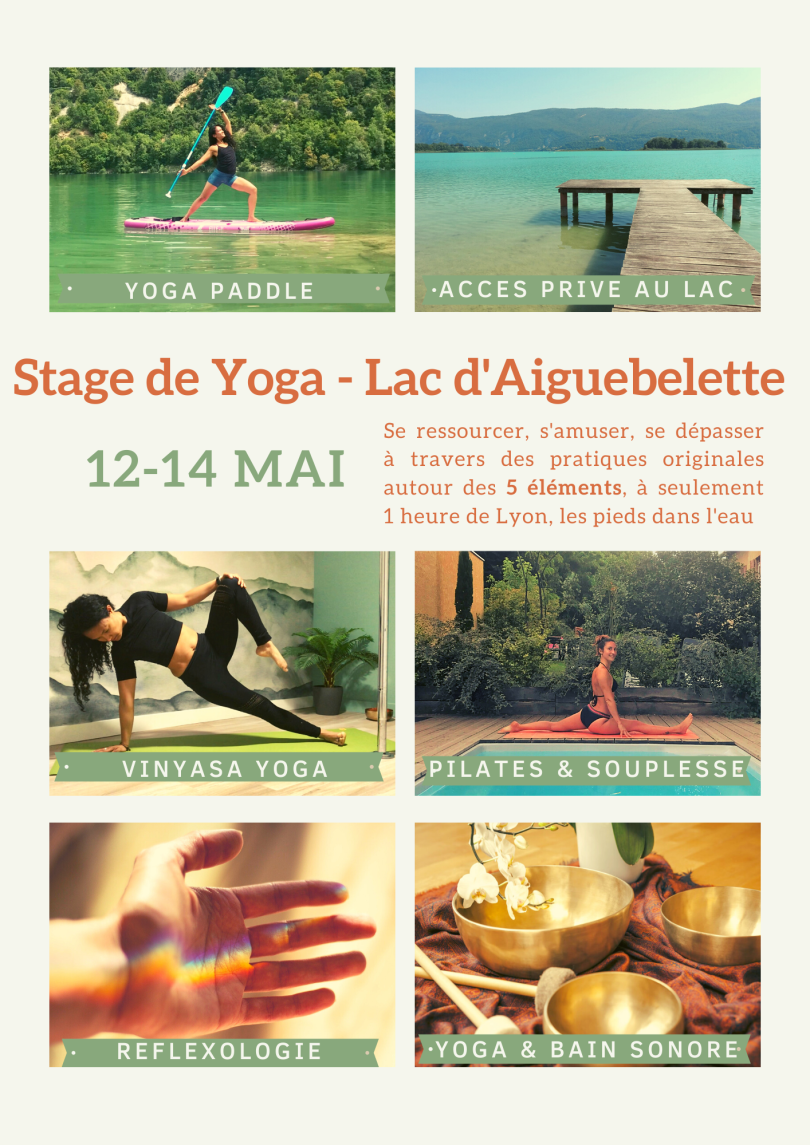 - 14h: Yoga Paddle (Eau) & Balade en paddle sur le lac d’Aiguebelette sur la base de Vertes Sensations. En cas de mauvais temps, la séance sera remplacée par une séance de Yoga roue