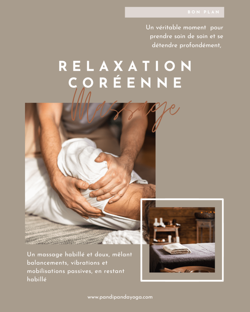 - 💕Relaxation Coréenne: Un massage habillé et doux, mêlant balancements, vibrations et mobilisations passives, en restant habillé